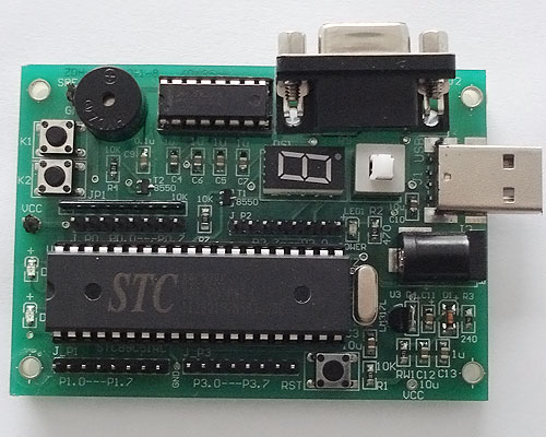 該板也兼容8路10位A/D轉換的STC12C5A16AD單片機,如需使用模擬量輸入直接換用該芯片即可。