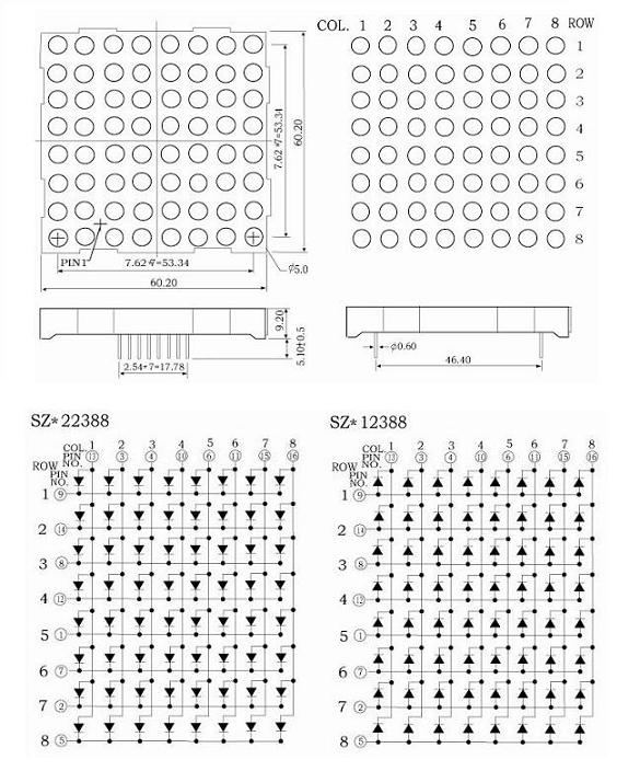 - 描述:5mm 8*8點(diǎn)陣共陽