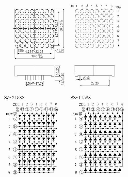 描述:3.7mm 8*8點(diǎn)陣共陽