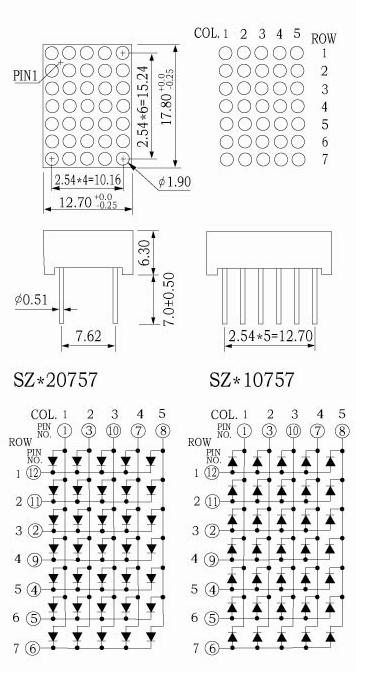 - 描述:1.9mm 5*7點(diǎn)陣共陽