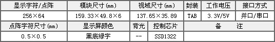 - 描述:顯示點(diǎn)陣:256X64,品牌:金鵬 ,模塊尺寸:159.33X49.8X6,視域尺寸:137.65X35.89 控制IC:SSD1322 封裝TAB 串口/并口,工作電壓3.3V(2.7-3.5),工作溫度-30至70