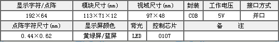 描述:品牌:金鵬,模塊尺寸:113X71X12 視域尺寸:97X48 控制IC:0107,封裝COB