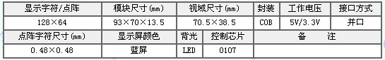 - 名稱:OCM12864-2 藍(lán)屏3.3V