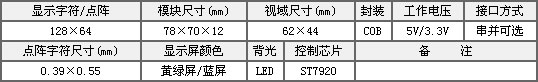 - 描述:品牌:金鵬 帶中文字庫,模塊尺寸:78X70X12.5 視域尺寸:62X44 控制IC:7920