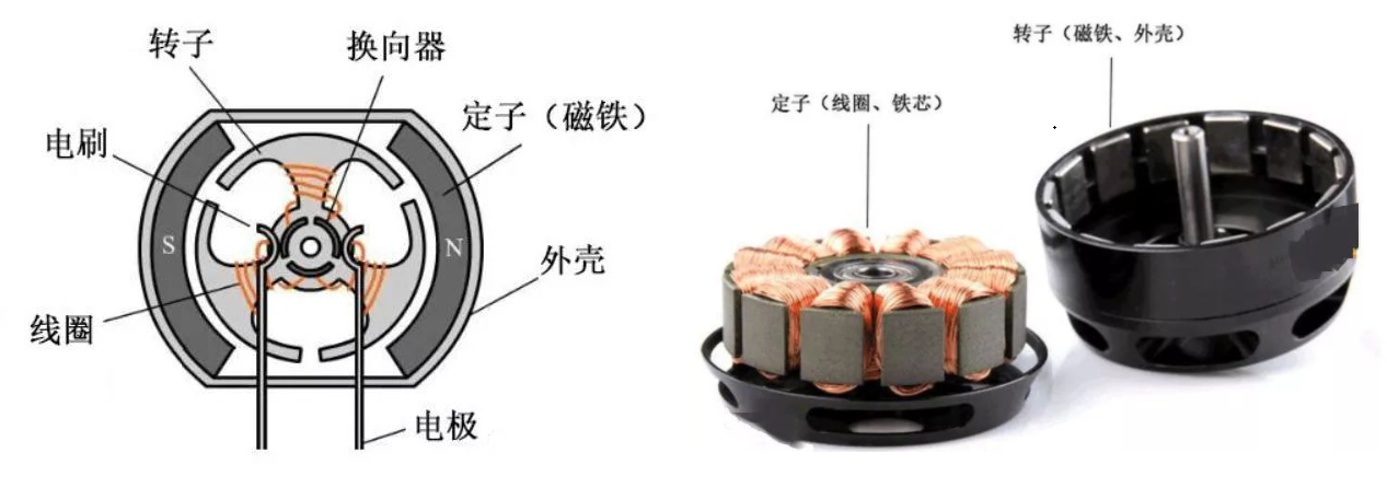 圖 1-2 左側為有刷電機、右側為無刷電機(圖片來自網(wǎng)絡)