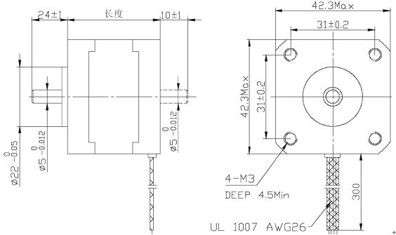 42步進電機是指步進的尺寸,混合式步進電機一般都是正方形,外框尺寸為42mm*42mm; 除42之外還有57步進電機,86步進電機,也都是因外框尺寸而得名的。