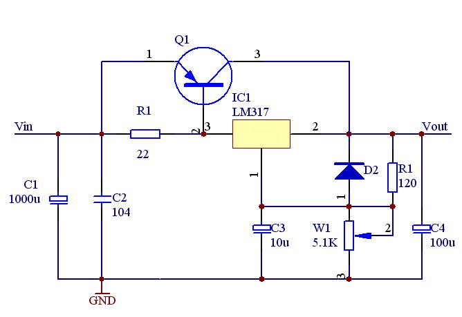 這個(gè)電路是LM317最基本的應(yīng)用電路,在使用的過(guò)程中要注意最小壓差不得小于4V和最大壓差不得大于37V,小于4V電路將不工作,大于37V將導(dǎo)致集成電路的損壞。