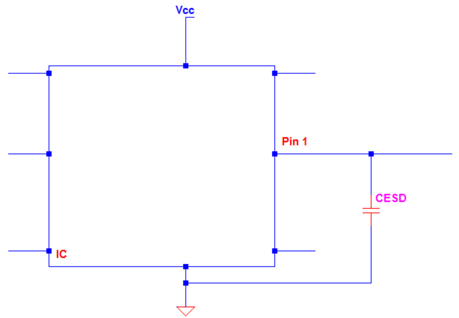 IC 引腳旁邊放置瓷片電容器也可以做到ESD保護。比如當(dāng)人體觸摸該引腳時,人體上的電容與電路中的電容C ESD形成并聯(lián)。這個時候人體內(nèi)的8kV電位將被抑制,依據(jù)的基本原理就是電荷守恒,就是人體內(nèi)的電荷轉(zhuǎn)移到了電路的電容上,從而避免損壞器件。