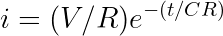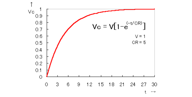 當(dāng)?shù)谝粋方波電壓加在微分電路的兩端(輸入端)時,電容C上的電壓開始因充電而增加。而流過電容C的電流則隨著充電電壓的上升而下降。電流經(jīng)過微分電路(R、C)的規(guī)律可以用下面的公式來表達(dá):